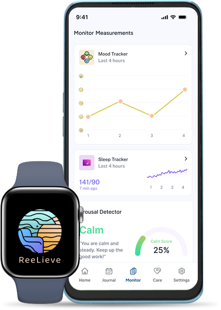ReeLieve gives PTSD sufferers instant relief and control by combining smartwatch technology and an intuitive app, we help the user manage their PTSD and anxiety in real time no matter where they are.